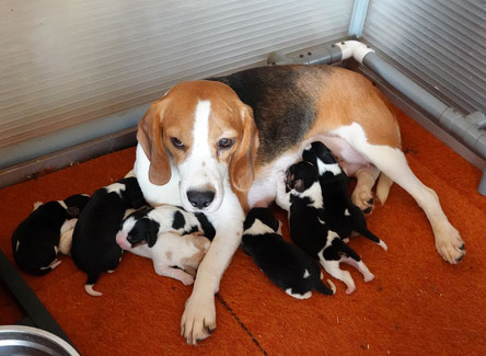 Teef Dolly heeft prachtige Beaglier-puppy's gekregen.